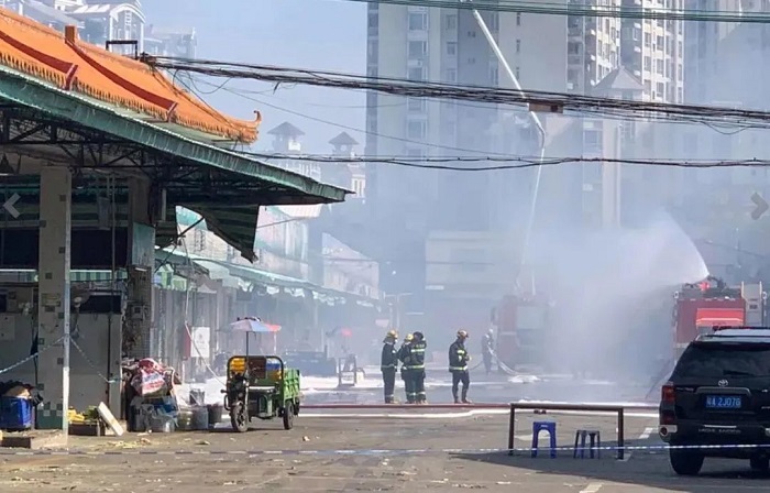 據市場內經營者的口述和視頻證實,火災在日出沒多久即發(fā)生。起火的那一批店鋪銷售的貨物較雜,當中有文具、塑料,還有米、食用油、海味等。由于起火建筑結構相對簡易,當中只要有一間店鋪著火,即會波及相鄰店鋪。