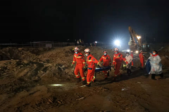 救援人員在山體滑坡現(xiàn)場展開搜救