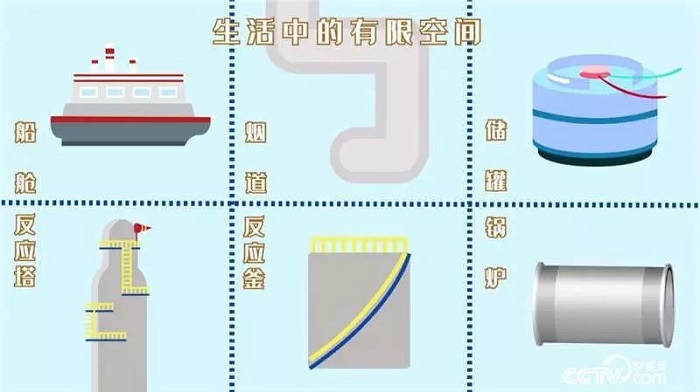? 密閉設(shè)備,如船艙、貯(槽)罐、車載槽罐、反應(yīng)塔(釜)、窯爐、爐膛、 煙道、管道及鍋爐等。