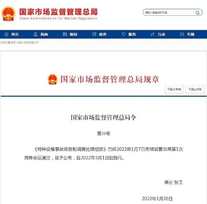 第四十二條 本規(guī)定自2022年3月1日起施行。2009年7月3日原國家質(zhì)量監(jiān)督檢驗(yàn)檢疫總局令第115號(hào)公布的《特種設(shè)備事故報(bào)告和調(diào)查處理規(guī)定》同時(shí)廢止。