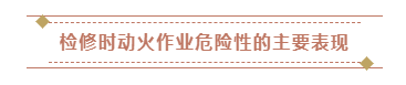 ◆ 管理方面不按規(guī)定辦理動火證、不執(zhí)行動火證規(guī)定的安全措施,易造成火災(zāi)爆炸事故。