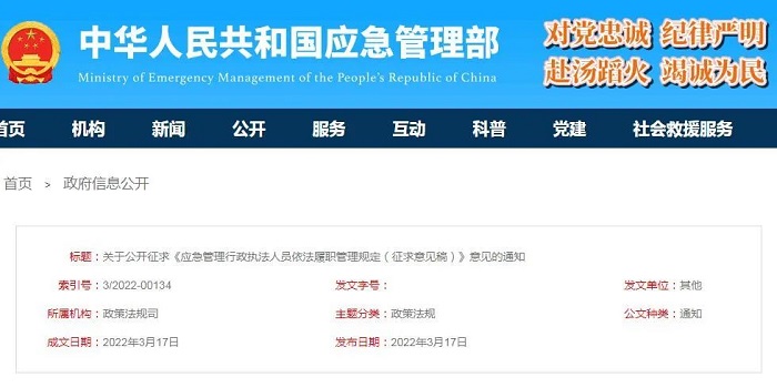 3月17日,應急管理部發(fā)布《應急管理行政執(zhí)法人員依法履職管理規(guī)定(征求意見稿)》,公開征求意見。這個規(guī)定的22條說,消防救援機構依照本規(guī)定執(zhí)法。《規(guī)定》的第十條,制訂了十六種情形下的執(zhí)法行為不受責任追究。