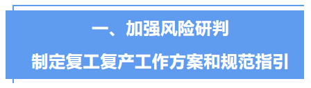 復(fù)工復(fù)產(chǎn)期歷來是事故易發(fā)多發(fā),必須高度警惕。各部門、各街鎮(zhèn)、各單位要加強(qiáng)對(duì)企業(yè)復(fù)工復(fù)產(chǎn)的組織領(lǐng)導(dǎo),采取有力措施防范化解“疫后綜合癥”。要緊密結(jié)合行業(yè)和區(qū)域特點(diǎn),組織召開一次復(fù)工復(fù)產(chǎn)安全風(fēng)險(xiǎn)研判專題會(huì)議,建立督導(dǎo)專班,分類研究制定并推進(jìn)落實(shí)企業(yè)復(fù)工復(fù)產(chǎn)督查指導(dǎo)方案。要明確相關(guān)規(guī)定要求和規(guī)范指引,做到“一領(lǐng)域一方案”“一區(qū)域一方案”,及時(shí)發(fā)現(xiàn)、處置和消除企業(yè)復(fù)工復(fù)產(chǎn)過程中的安全風(fēng)險(xiǎn)隱患。