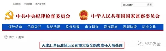 中央紀委國家監(jiān)委網(wǎng)站通報,據(jù)天津市紀委監(jiān)委消息,天津匯洋石油儲運公司重大安全隱患責任人被處理。