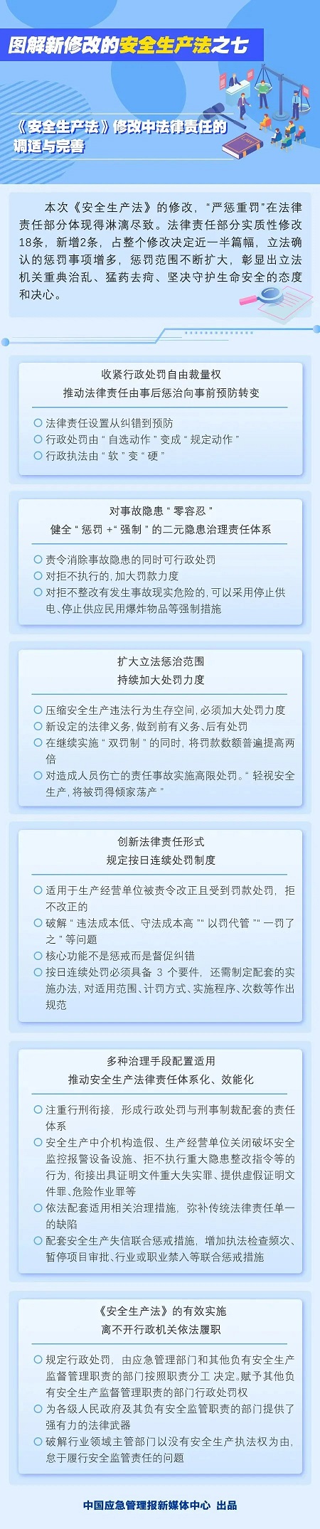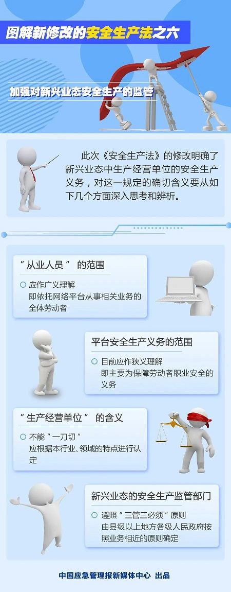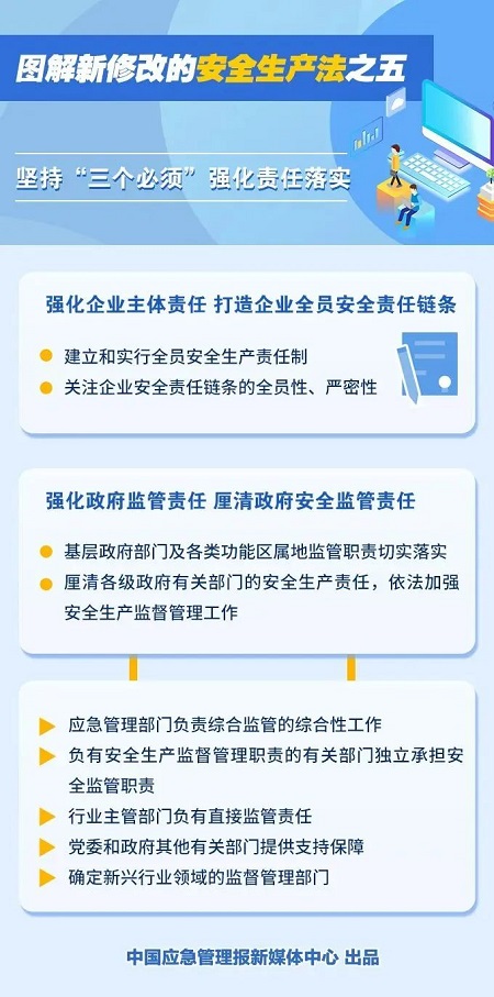 本次修改主要包括貫徹新思想新理念、落實中央決策部署、健全安全生產責任體系、強化新問題新風險的防范應對、加大對違法行為的懲處力度五方面內容。新《安全生產法》將習近平總書記關于安全生產工作一系列重要指示批示精神轉化為法律規(guī)定,為統(tǒng)籌發(fā)展和安全兩件大事提供了堅強的法治保障。同時進一步明確規(guī)定監(jiān)管主體和監(jiān)管對象,厘清安全生產監(jiān)管職能的部門責權,明確細化生產經營單位安全生產義務,有利于提高安全生產監(jiān)管水平,全面落實安全生產主體責任。