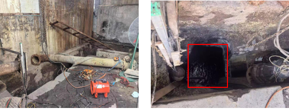 事發(fā)當(dāng)日,該企業(yè)組織員工開(kāi)展污水處理系統(tǒng)檢維修、清淤等作業(yè),事故發(fā)生在污水處理系統(tǒng)的集水池。污水處理系統(tǒng)集水池位于地下1.3m以下位置,尺寸為5m×4m×2.2m(長(zhǎng)寬深),事故發(fā)生時(shí)積水深度約80cm。