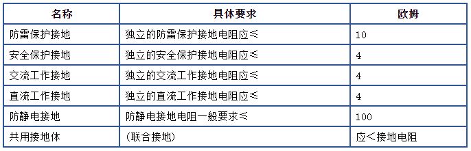 8、標(biāo)準(zhǔn)接地電阻規(guī)范要求見下表