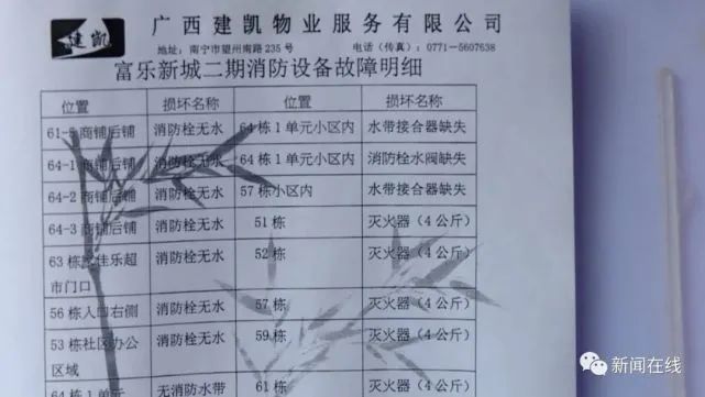 那到底發(fā)生火災(zāi)時消防栓有沒有呢?記者跟隨趙女士來到南寧市江南區(qū)沙井街道富康社區(qū)居民委員會,了解到社區(qū)目前已經(jīng)對趙女士家展開了幫扶工作。他們表示,消防栓平時社區(qū)有在監(jiān)管,但是在火災(zāi)發(fā)生時恰逢消防管網(wǎng)檢修,這才沒有水。隨后,記者找到管理商鋪的建凱物業(yè),也證實了這一信息。建凱物業(yè)表示,他們自2014年接管富樂新城二期的部分樓棟和商鋪以來,就發(fā)現(xiàn)消防管道時有問題發(fā)生,因此多次向業(yè)主單位及相關(guān)部門遞交詢價、書面匯報及維修建議。最近的一次,是2021年9月10日他們向南寧市江南區(qū)政府遞交的工作致函,上面寫著:因為地下消防管道漏水,為避免影響住戶通行、跑水造成資源浪費(fèi),因此關(guān)閉了消防網(wǎng)管的總水閥,并建議更換維修。物業(yè)認(rèn)為,對于富樂小區(qū)消防管線,他們已經(jīng)盡到管理義務(wù),不存在疏于管理的情況。